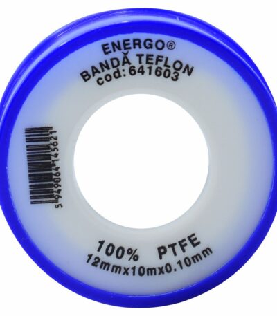Banda din teflon de 12mmx0,075mm si lungimea de 10m este un accesoriu esential pentru sigilarea eficienta a conexiunilor la scule pneumatice sau pentru utilizare generala.